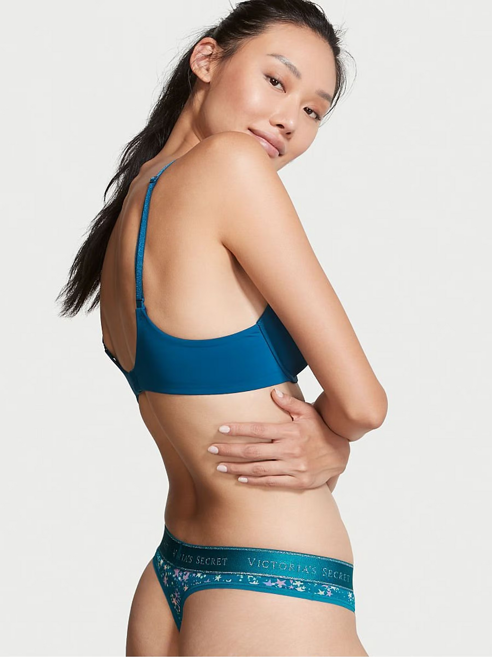 Tanga Negra con Detalle de Corazón y Logo en la Espalda